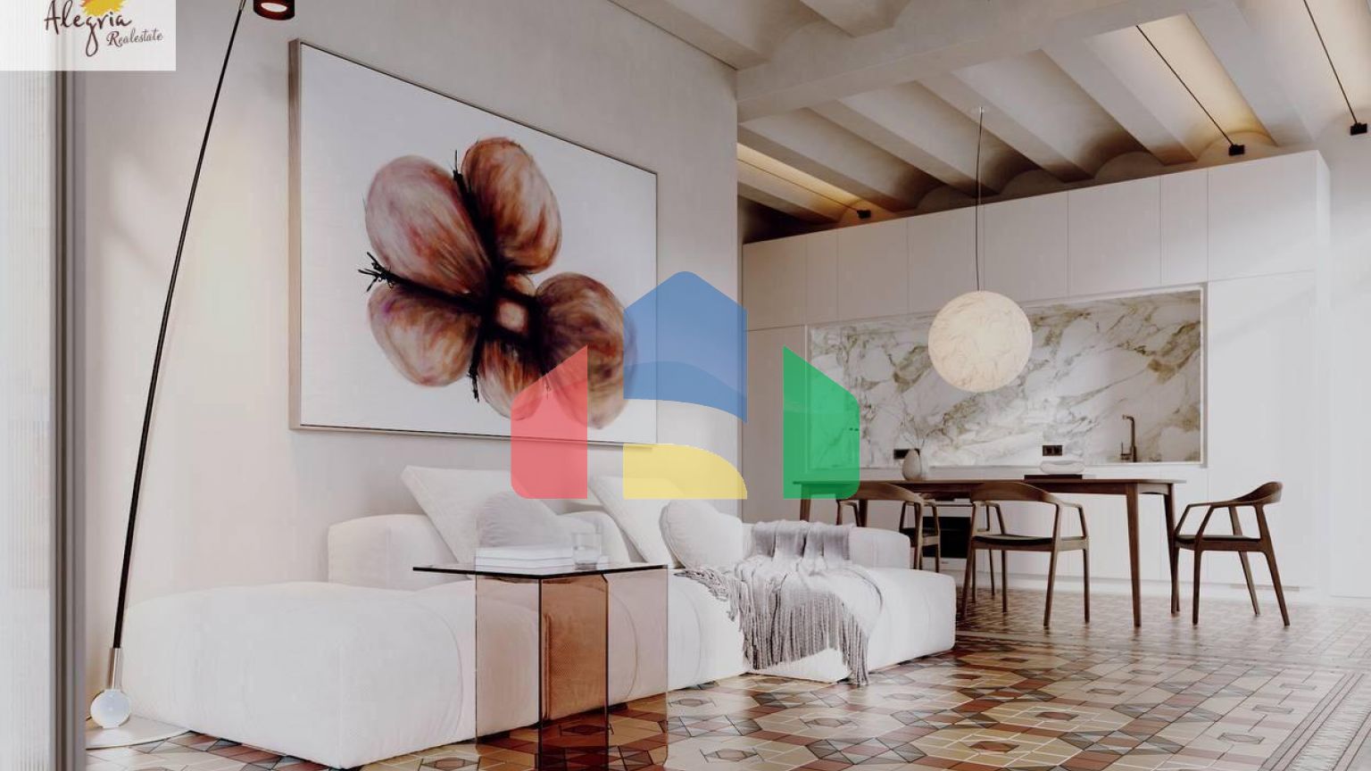 This project features six apartments that harmonize with the neighborhood’s architectural style, using high-quality materials and innovative technologies such as high-insulation windows and a bright central patio. The apartments range in size from 34 m² to 73 m², with prices from €165,000 to €300,000. Each unit includes a sleeping area, an open-plan kitchen integrated with the living and dining area, a bathroom with a shower, and built-in storage.