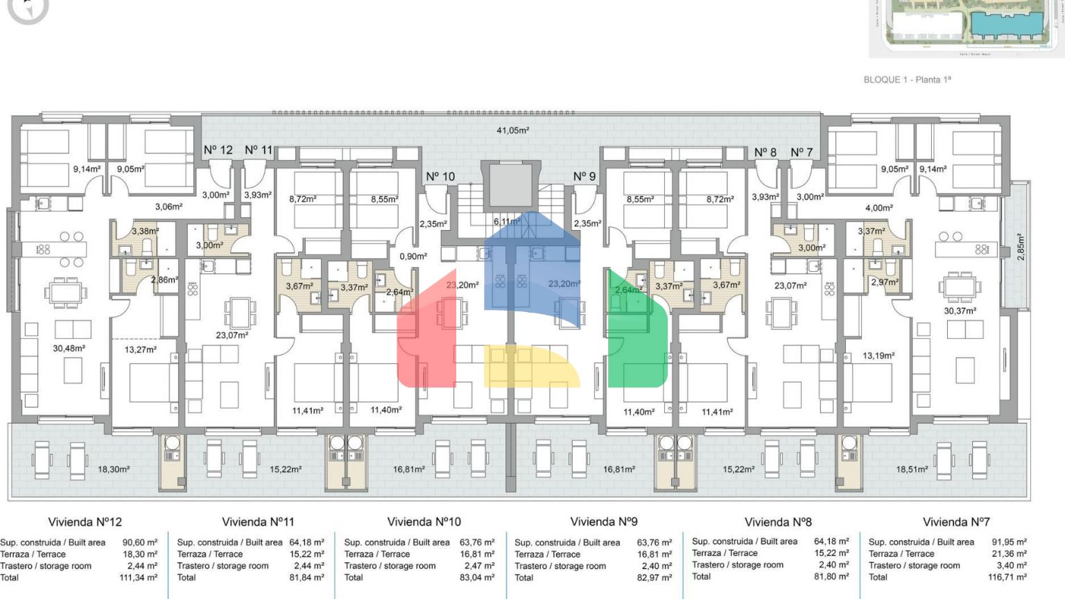 Квартиры на первом этаже с частными садами, квартиры на среднем этаже с большими террасами и пентхаусы на верхнем этаже с частными соляриями.