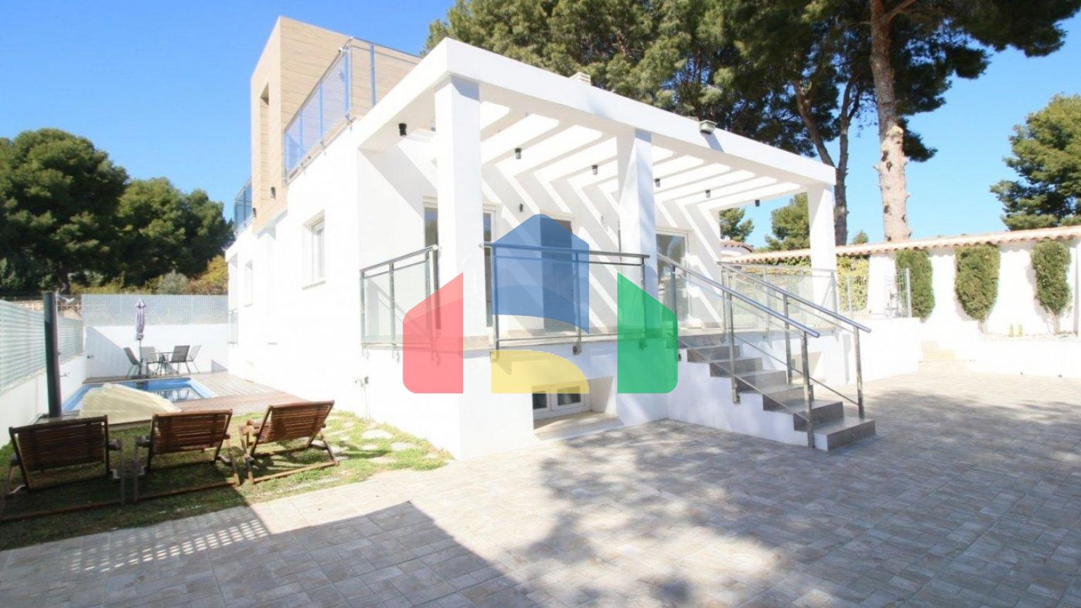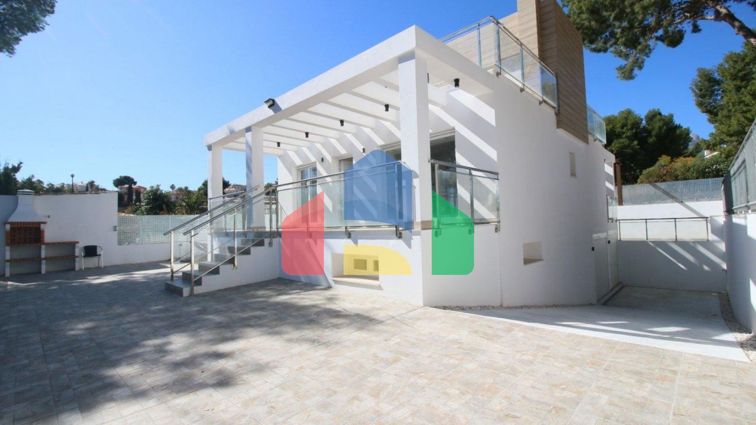 Продаётся дом в La Nucía в районе Mercadona Avda. Coloma. Общая площадь 330.00 м2, участок 400 м2, дом 2021 года постройки, состоит из 5 комнат (4 спальни, 1 салон), 3 ванных комнат, находится в 6 км от моря. Имеется кондиционер, обогрев, частный бассейн, солярий, терраса.