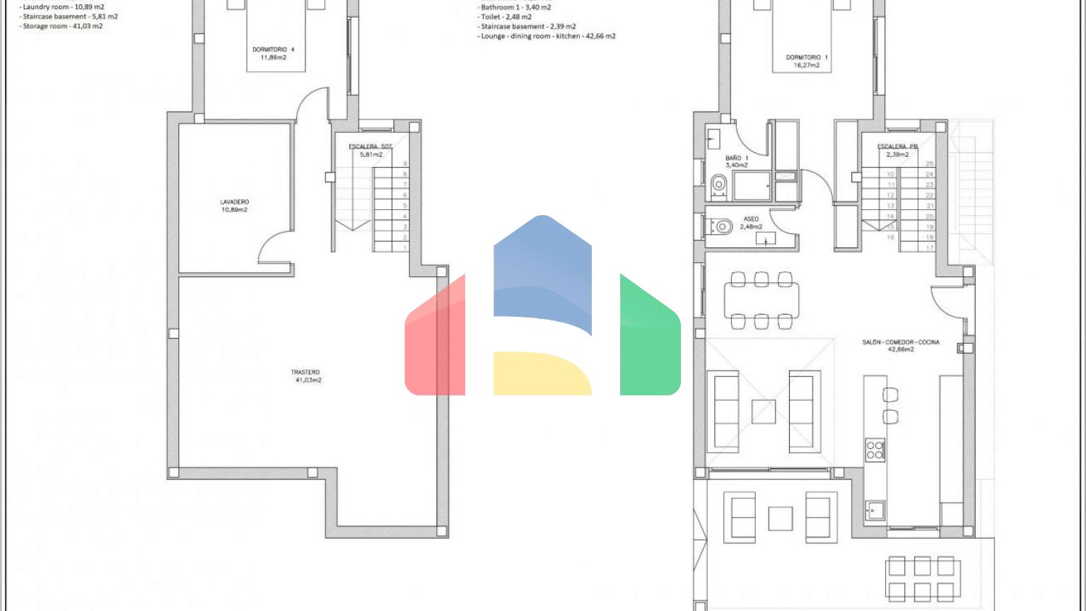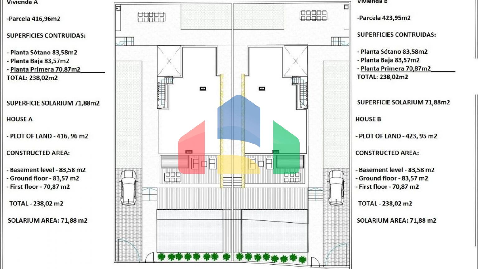 Виллы имеют 4 спальни, 4 ванные комнаты, кухню открытого плана с гостиной, встроенные шкафы, частный сад с бассейном и парковочным местом на бездорожье, частный солярий и подвал.