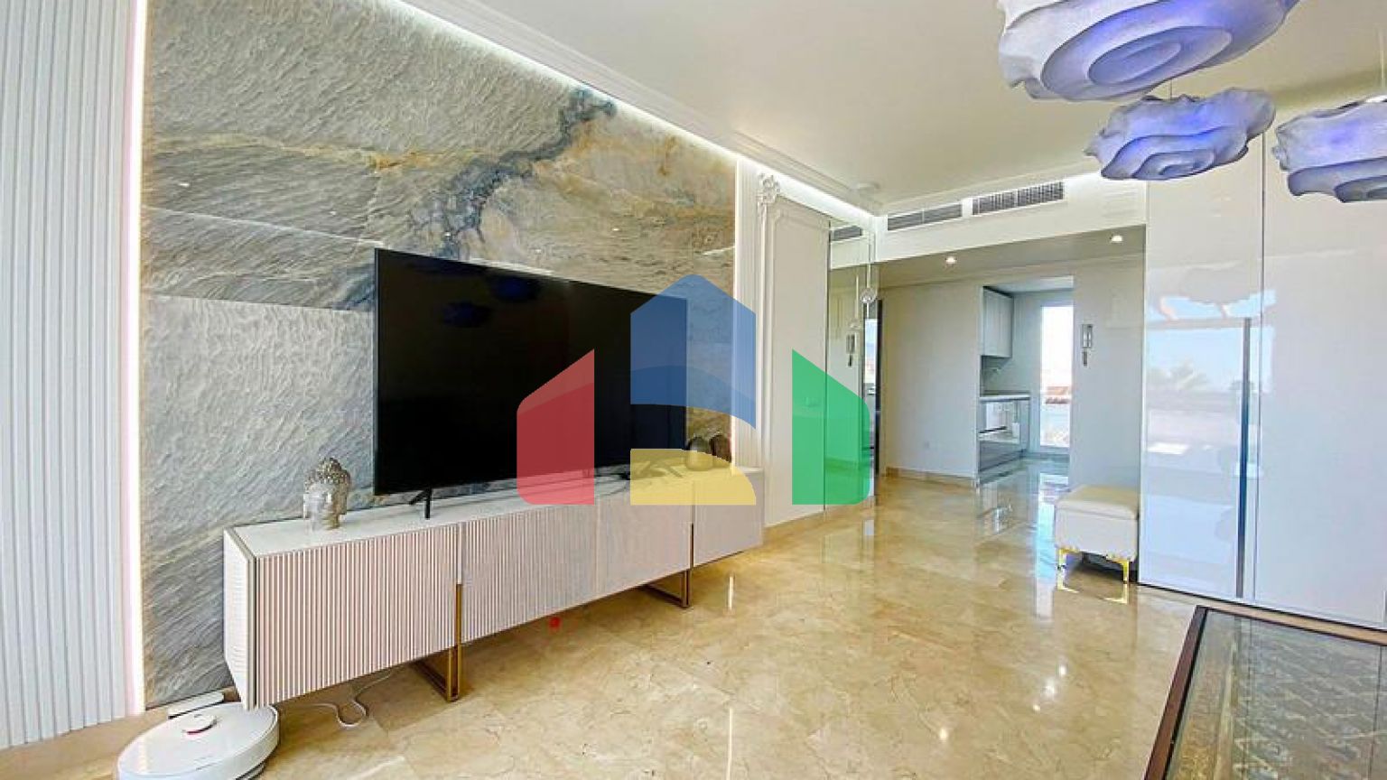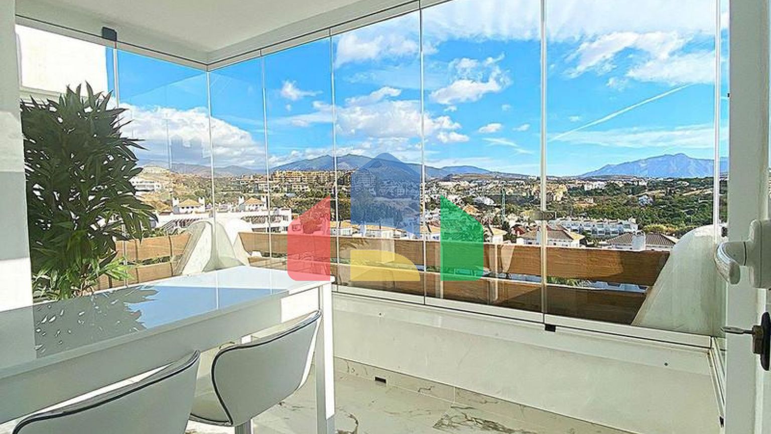 Полностью отремонтирован и меблирован в эксклюзивном, элегантном и роскошном стиле, с использованием высококачественных материалов, дизайнерской мебели, LED-освещения и мраморных полов. Современная немецкая кухня оснащена техникой Bosch и имеет собственную террасу с остеклением Lumon и барную стойку с видом на море и горы. Еще одна терраса, площадью 24 м², просторная, частично крытая, с видом на море и Гибралтар.