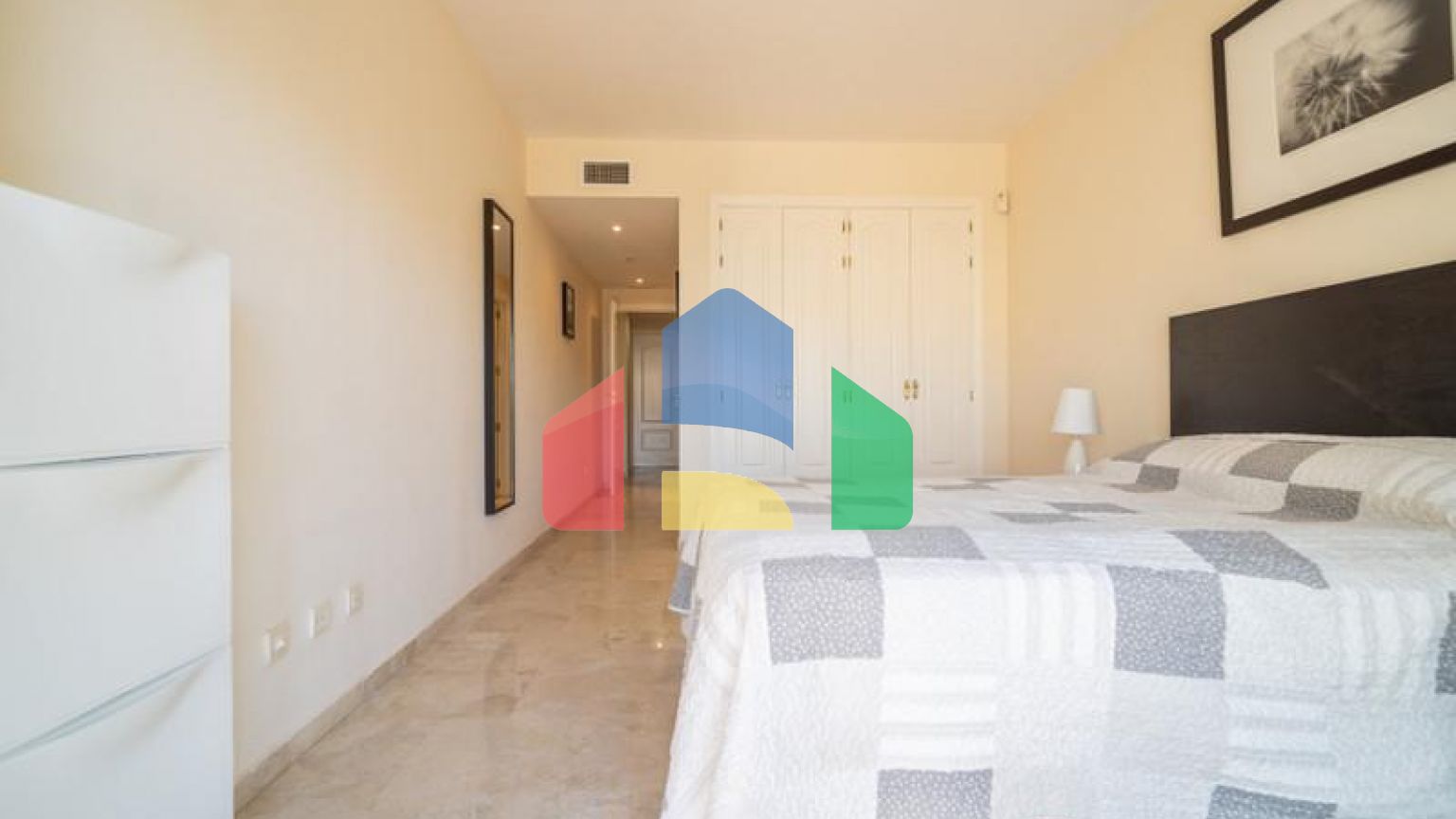 Квартира включает 2 просторные и светлые спальни, обе с встроенными шкафами, и 2 современные ванные комнаты, одна из которых – с ванной. Жилая площадь составляет 135 м², предоставляя удобное и хорошо организованное пространство для повседневной жизни.