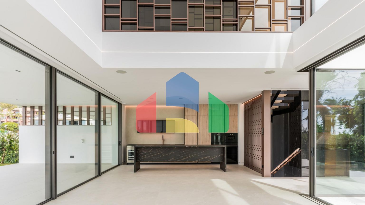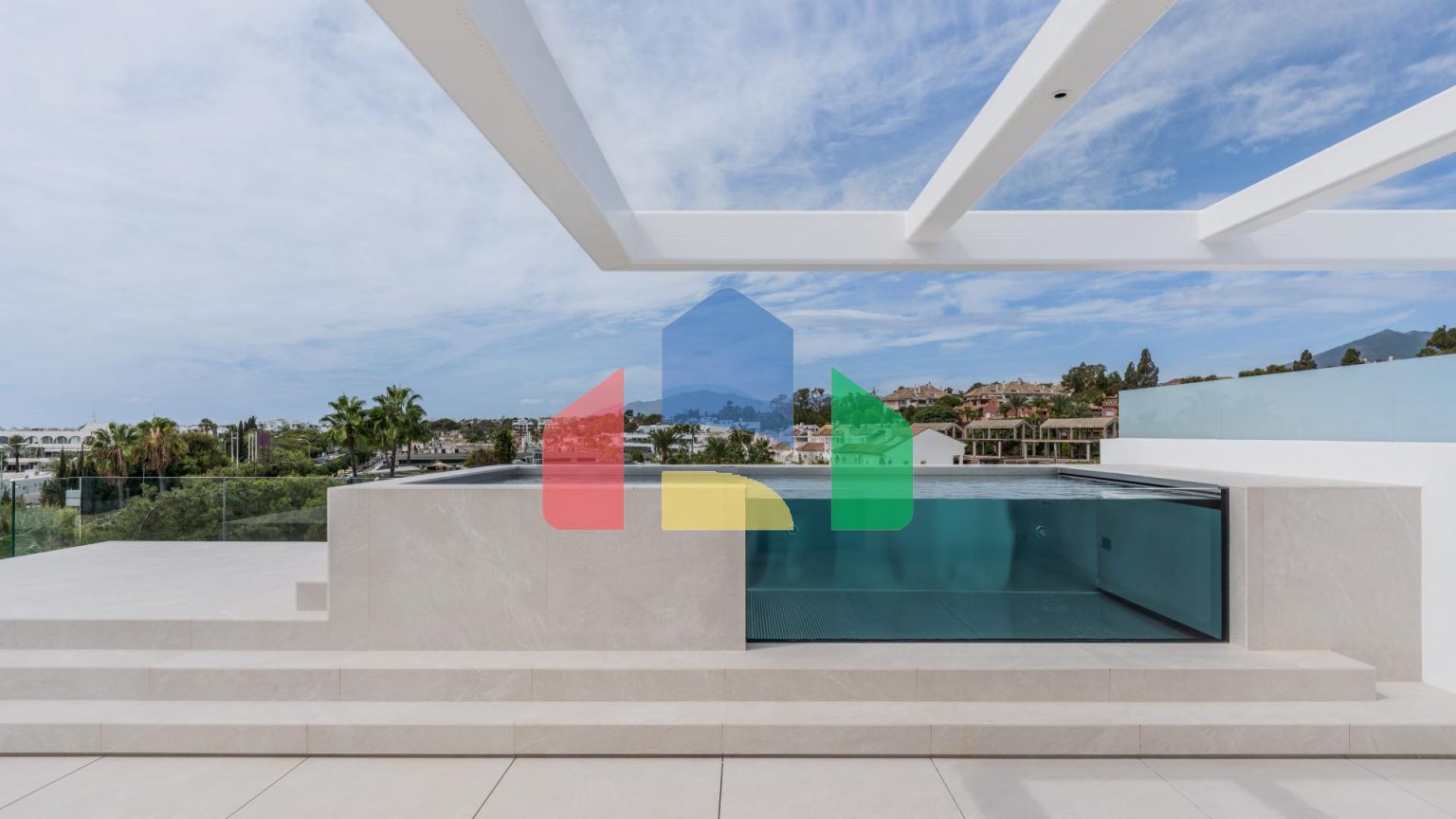Снаружи вас приятно удивят ландшафтные сады, большой бассейн инфинити и вид на завораживающую гору Ла Конча. Гостиная обставлена элегантным и современным интерьером с окнами от пола до потолка, что делает комнату очень светлой. Гостиная соединена с террасой и имеет панорамный вид на море – это идеальное место для отдыха и принятия солнечных ванн. Открытая кухня оснащена встроенной бытовой техникой Gaggenau. Все 3 спальни предлагают уютный, шикарный интерьер с гардеробными с дверьми из стекла, окнами от пола до потолка, мраморными стенами и отделкой от Porcelanosa, также в доме проложены паркетные полы.