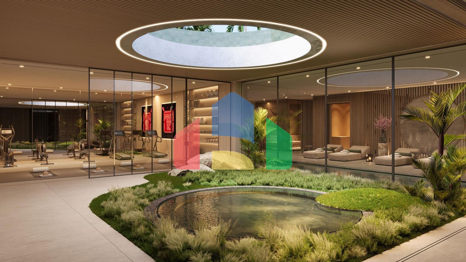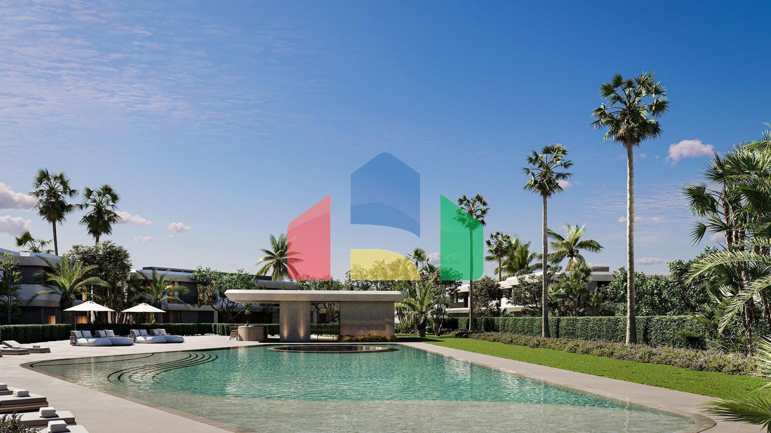 Дизайн комплекса включает в себя средиземноморский и тропический ландшафт, создавая спокойную и привлекательную атмосферу. Интерьеры выполнены в естественной цветовой палитре, которая дополняет пышную природу, способствуя ощущению спокойствия и единения с природой.